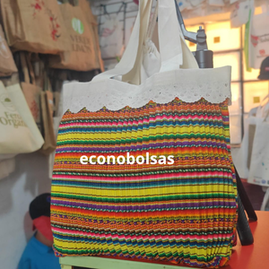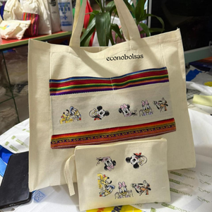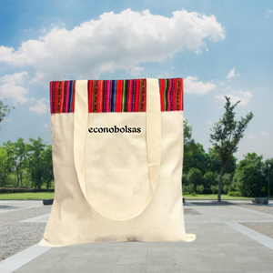 - Asimismo, las bolsas de tocuyo con bordes en tela andina colorida ofrecen detalles únicos que marcan la diferencia y elevan el diseño artesanal.