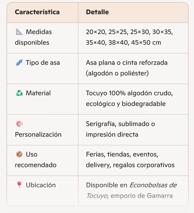 Las bolsas de tocuyo son versátiles, ecológicas y personalizables.